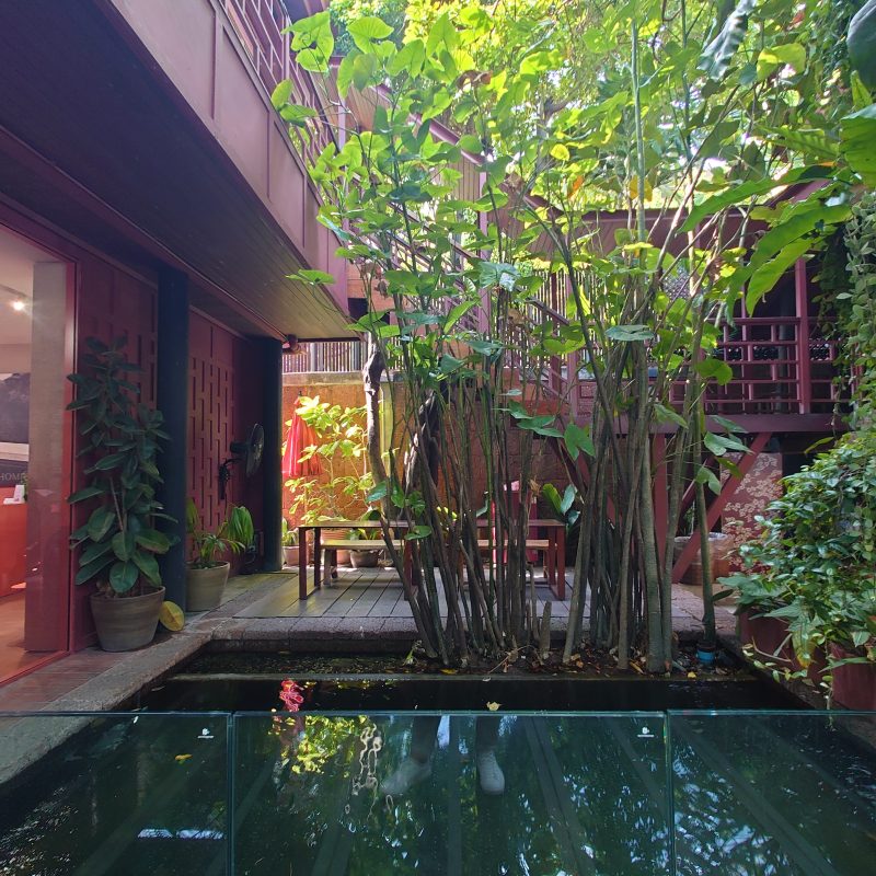 一歩足を踏み入れた瞬間、外の喧騒とはまるで別世界。緑豊かな庭と伝統的なタイ建築が織りなす空間には、どこか背筋が伸びるような、凛とした空気が漂っていました。木の温もりを感じる建物の中は、静けさの中にも洗練された美しさが息づいており、時間がゆっくりと流れているかのような感覚に包まれます。
