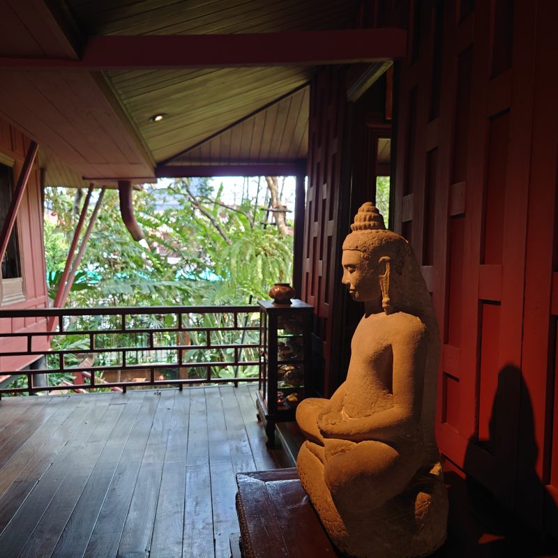 館内に並ぶ美術品や調度品の一つひとつからは、オーナーであるジム・トンプソンの審美眼とこだわりが感じられ、単なる観光地ではなく、“美意識そのものを体験できる場所”だと感じました。